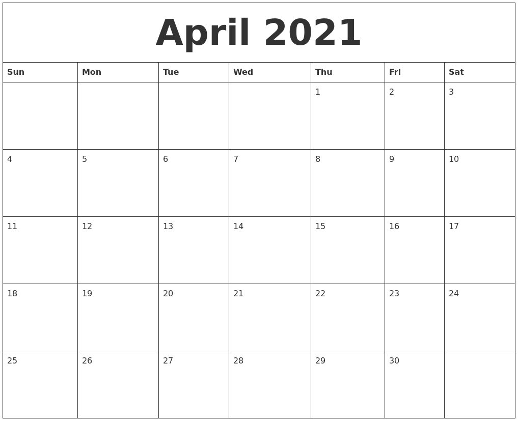 April calendar template 2021